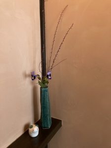 んー、素朴なお花を素朴な花瓶にザックリ。