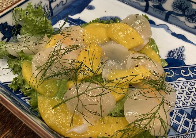 トップ写真は、ホタテと桜桃のカルパッチョ。