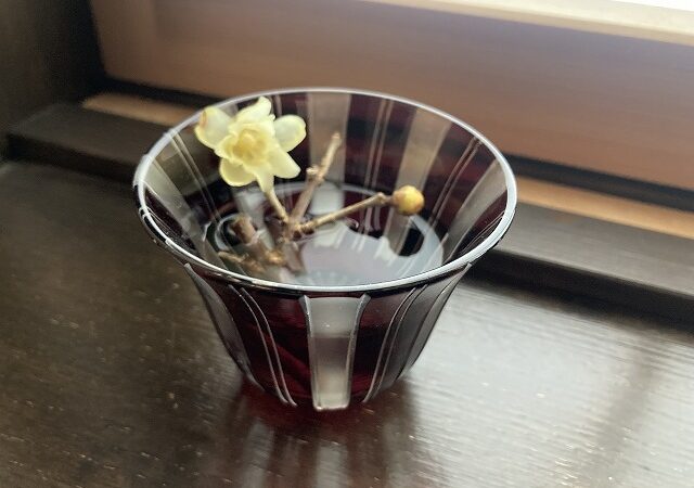 — 器の話 — 古民家映え?!器の話36 2026年2月22日 東京編、第二弾。 と言っても・・購入したのは40年くらい前?! なので・・どこで買ったか覚えていない、江戸切子。 父がぐい飲みを集めていたので・・ 何か、プレゼントしたのだったかしらん?? 私は下戸なもので・・・ ドレッシングなどを入れて楽しんでいます。 あ、先日は、庭の蝋梅・・ 枝が短すぎたので・・ぽちっと活けてみたっ♪ ☆☆古民家ゲストハウス・蓮公式LINE☆☆宿泊時に使えるお得クーポン配布中♪ご予約もこちらからどうぞ。