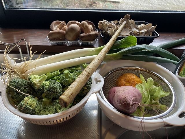 庭からの贈り物、ふきのとうの天ぷら(他、しいたけ・サツマイモ・人参)