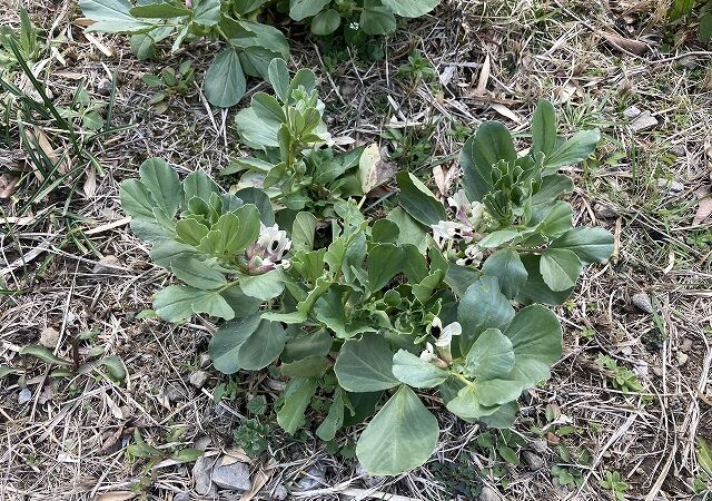 そら豆は、なぜか田んぼの畔の