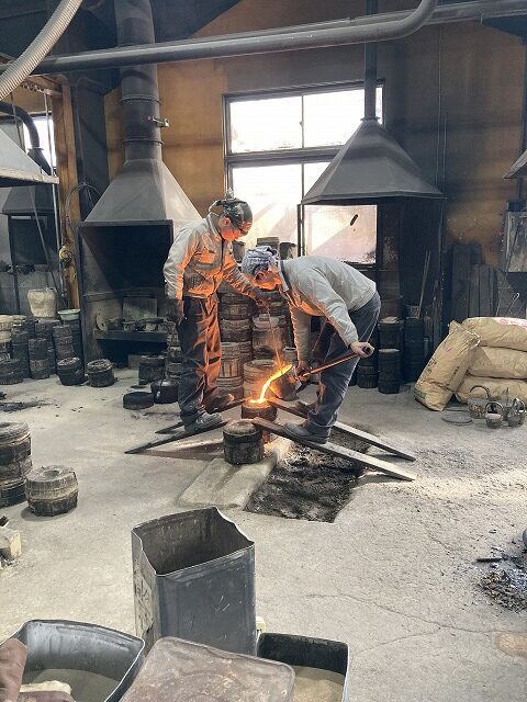高熱でどろどろの鉄?を注ぎこむ様子は迫力があります。